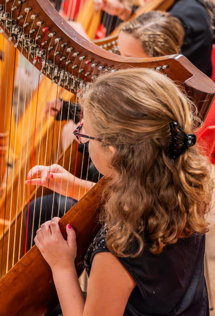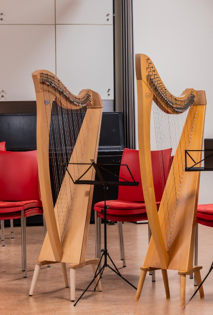Huurharp: mogelijkheid tot het huren van een haakjesharp, enkelpedaal- of dubbelpedaalharp